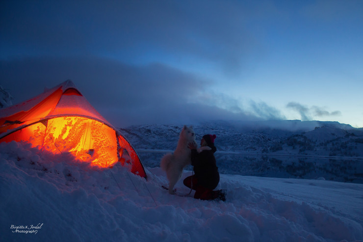 Meg og Orion nyt siste kveldslyset før me kryper inn i teltet.