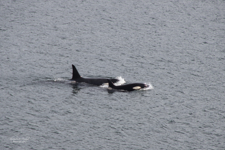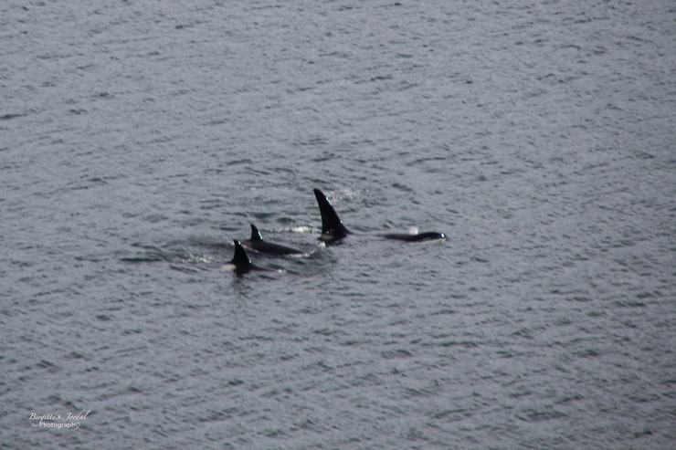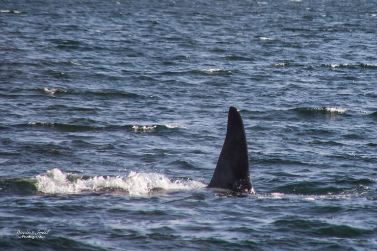 Ikkje av dei største, men iallefall ei ryggfinne.Eg visste det hadde vert spekkhoggarar i Hardangerfjorden tidlegare, så utan forvarsel ropte eg så høgt at heila vika kunne høyre det: «spekkhoggarar»!! Sprang så fort beina kunne bæra meg, for å hente kameraet. Vel oppe igjen i bilen, kokte det i hovudet på meg, kva gjer eg no tenkte eg! Skal eg ta den vetle båten med sine 270 centimeter, eller skal eg køyre ut på næraste nes?! Måtte ringja far min, og fekk beskjed om å vente til han kom. Kvart sekund tok ein evigheit, no måtte han komma før dei passerte neset. Eg klarte kanskje venta eit minutt, då klarte eg ikkje meir. Spekkhoggarar er noko av det finaste eg ser. Ringte far min å sa: «eg kan ikkje venta eit sekund til, eg tek bilen, me møtes på tippen». Framme på tippen, tok eg ungane med ut for å sjå på dei fantastiske kvalane. Dei kom mot neset, spruten sto opp i lufta av pusten deira, og eg høyrte lyden som gav frysningar heilt ned i tæra. Dei kom nærare og nærare land, eg kunne sjå minst fem stykk. For ein følelse, og for nokon majestetiske dyr. Med ein toppfart på rundt 50 km/t, for dei utover Hardangerfjorden, og me følgde etter frå nes til nes med bil. Eine plassen me stoppa, klarte eg ikkje dy meg. Når eg møtte spekkhoggarar i påsken 2015, angra eg så mykje på at eg ikkje tok hovudet under vatn og lytta etter signal frå dei. Så når eg no fekk sjansen, la eg med ned på berget, og tok hovudet under vatn, men eg høyrde dessverre ingenting. Eg reiste meg opp igjen, tømte lommene for nøklar og diverse, tok sats og stupte uti. Har alltid hatt ein draum om å bade med spekkhoggarar, så fordi om eg ikkje oppnådde det, så fekk eg i alle fall symje i same fjord med dei, berre at dei var lengre ute. Oppe på land igjen høyrde eg jento mi på fem år seie til besto si «mammo blir alltid heilt galen når ho ser spekkhoggarar, ho miste heile kontrollen». Eg måtte le litt. Ja, eg blir kanskje litt galen og enormt engasjert, men eg tenkje det er litt sunt og.